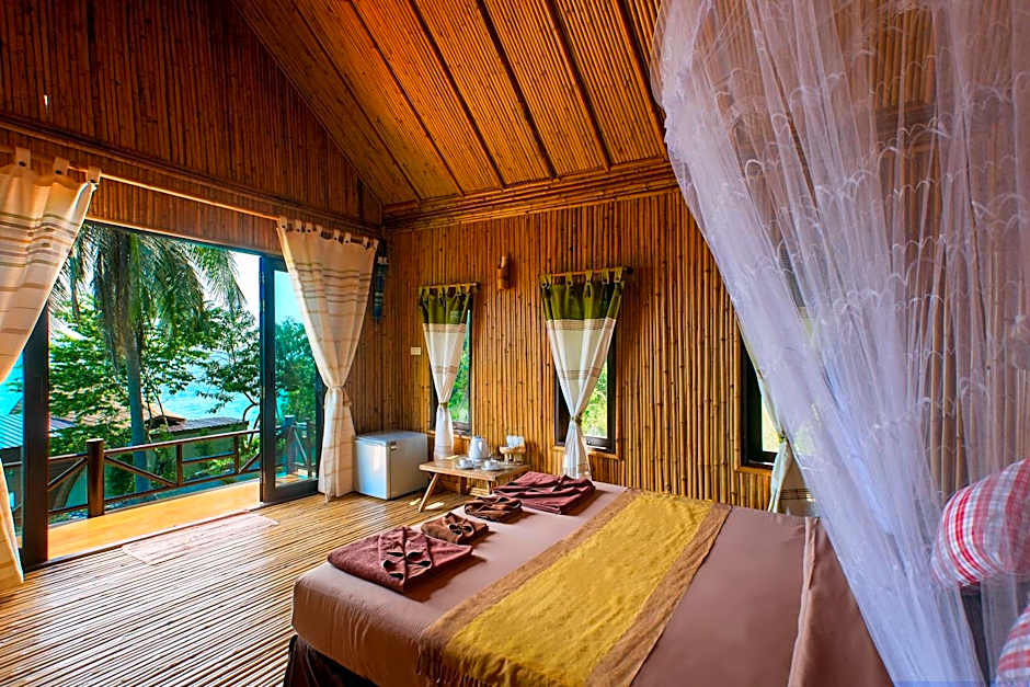 Stand-alone wooden bungalow features a private balcony and direct access to the beach.